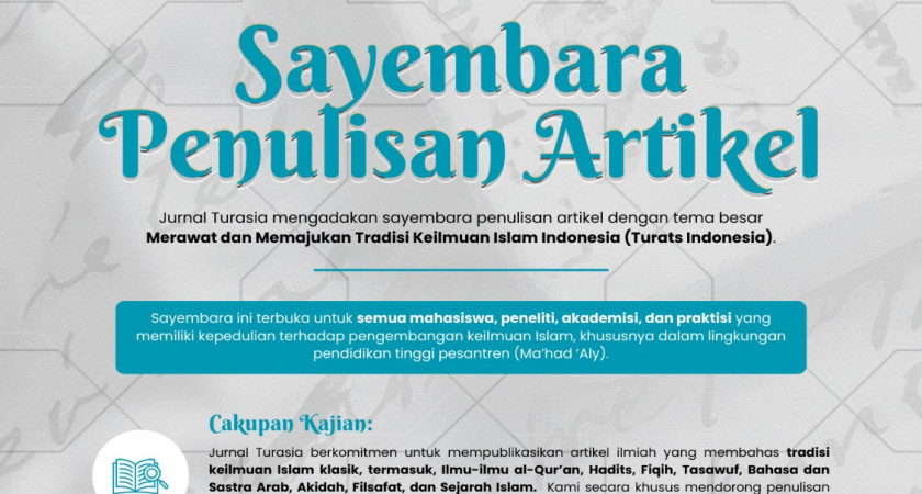 Batas akhir pengumpulan artikel adalah 15 Desember 2024. Artikel dapat dikirimkan melalui email ke turasia@kemenag.go.id. Informasi lebih lanjut dapat diperoleh melalui nomor WhatsApp panitia di 082329579694 atau email yang tertera pada flyer resmi.